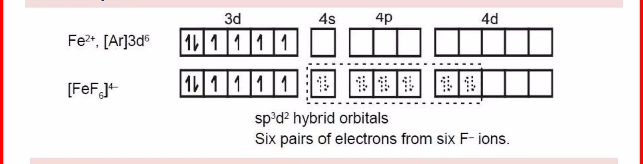 Παράδειγμα το εξαφθοροσίδηρικό ιόν και το εξακυανοσιδηρικό ιόν όπως δείχνει το σχεδιάγραμμα κάτω έχουν διαφορετική διάταξη τροχιακών στο μέταλλο που οφείλεται στην επίδραση του ασθενούς f-