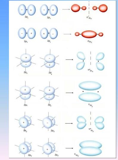 Διακρίνουμε στο σχήμα αριστερά τα μοριακά τροχιακά ενός απλού μορίου ΝΟ σ και π μοριακά