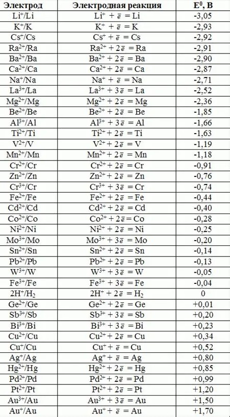 Стандартные окислительно-восстановительные потенциалы полуреакций (справочная таблица)